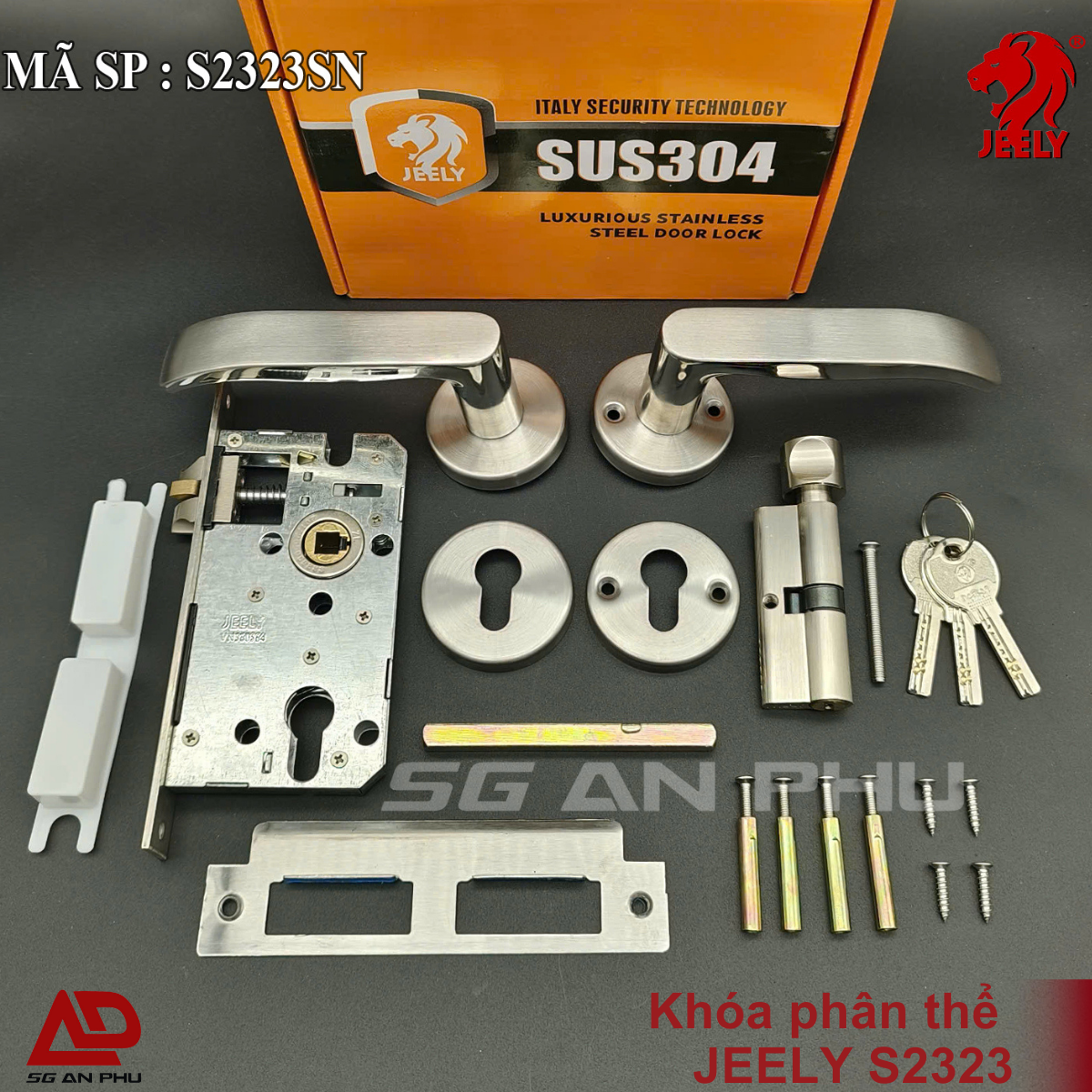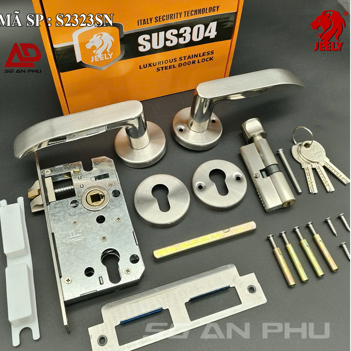 KHÓA PHÂN THỂ JEELY S2323 KHÓA CỬA PHÒNG INOX HỘP 4×8. Dùng cho cửa gỗ, cửa nhựa, cửa nhôm, cửa sắt